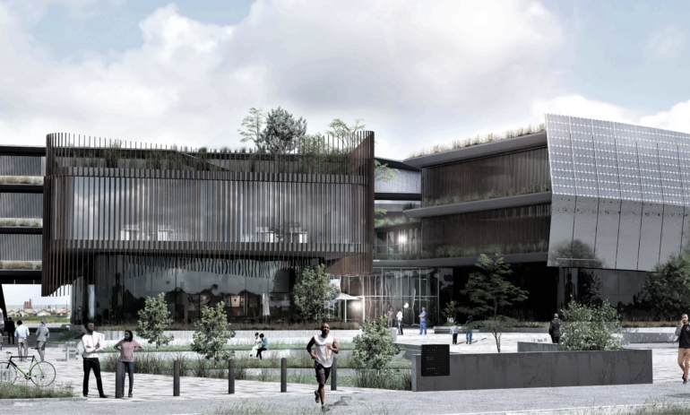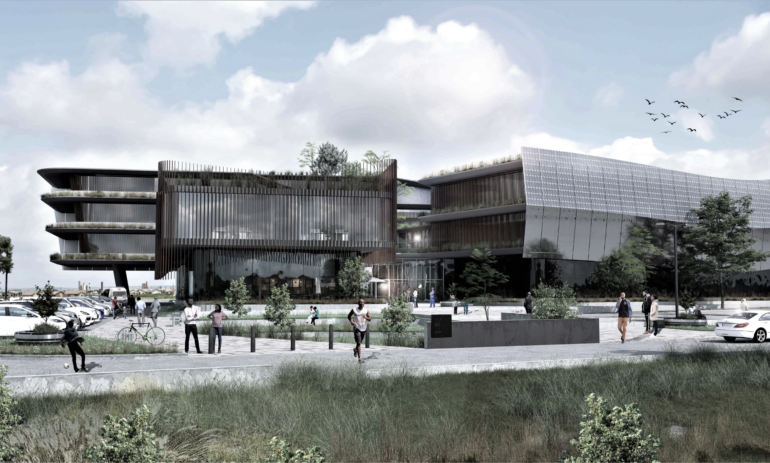 This is an initial concept design for a healthcare building offering world-class medical facilities within a low socio-economic South African context. Working with community values and structures played a crucial role in the design, for example, harnessing existing pedestrian paths across the site to define circulation and accessibility routes. Principles of biophilic design informed design choices, including green courtyards and an emphasis on views to the natural landscape.